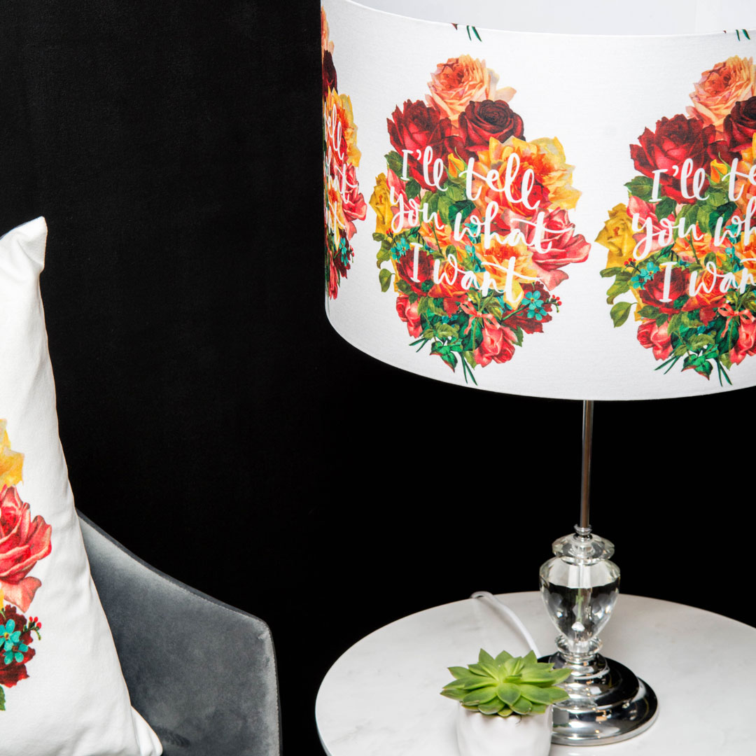 Handmade in the UK our statement drum shades can be made for ceiling or lamp base. High quality printing, a fire- rated inner ring and constructed using stiff translucent poly fabric these shades complete a room. Available in four sizes.